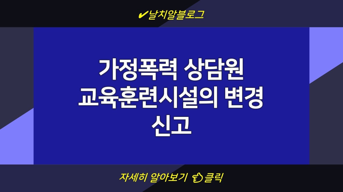 가정폭력 상담원 교육훈련시설의 변경 신고는 매우 중요한 절차로, 이 과정에서 요구되는 조건과 절차를 철저히 이해하는 것이 중요합니다. 이 글에서는 시설 변경 신고의 의미와 그 절차에 대해 살펴보겠습니다. 특히, 상담원이 보다 전문적이고 효과적으로 교육받기 위해 필요한 사항들에 대한 안내를 제공합니다. 변화를 주고자 하는 시설들은 이 정보를 통해 필수 요건을 잘 파악하고 준비할 수 있을 것입니다.