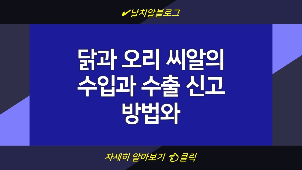 닭, 오리 및 씨알의 수입과 수출은 세계 각국의 식량 안전과 경제에 중대한 영향을 미칩니다. 따라서 이러한 물품의 거래에는 세밀한 신고 절차가 필요합니다. 신고 과정은 각국의 규정에 따라 다르며, 통관을 위한 필수 서류 준비와 관련 법규의 준수가 필수적입니다. 특히, 수입과 수출에 대한 신고는 다양한 요인에 의해 변화할 수 있으며, 이에 대한 충분한 이해가 필요합니다. 이 글에서는 닭, 오리 및 씨알의 수입과 수출 신고 방법 및 절차에 대해 자세히 살펴보겠습니다.