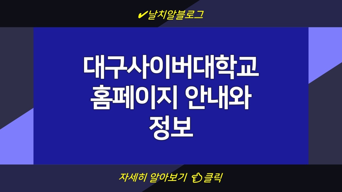 대구사이버대학교는 온라인 교육 환경에서 탁월한 학습 기회를 제공하며, 학생들이 필요로 하는 모든 정보를 통합하여 제공하는 플랫폼으로 자리잡고 있습니다. 다양한 전공과 편리한 학습 지원 서비스를 통해 학습자들은 자신만의 길을 개척할 수 있는 기회를 가집니다. 홈페이지를 통해 제공되는 정보는 학생들의 학습 발전에 큰 도움이 될 것입니다.