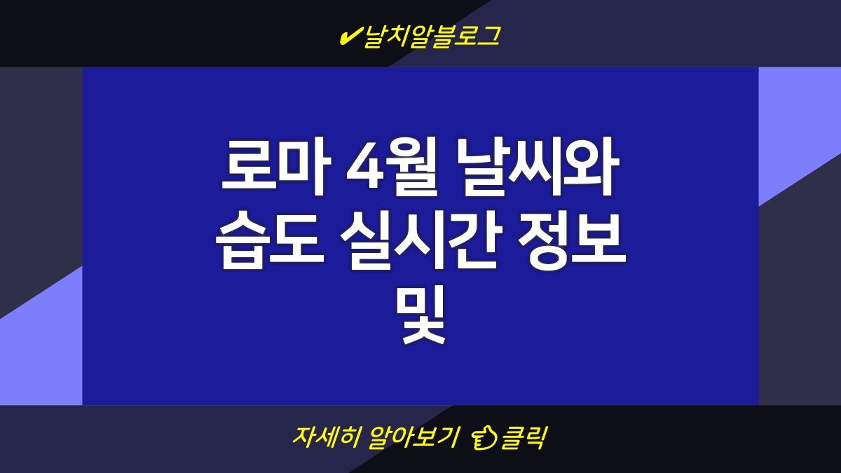 로마에 방문하기 전, 언제나 최신 날씨 정보를 확인하는 것이 중요합니다. 실시간 날씨 정보를 제공하는 사이트를 통해 습도와 기온을 체크할 수 있으며, 원하는 조건에 맞는 정보를 쉽게 찾아볼 수 있습니다. 특히 로마의 날씨는 변화무쌍하므로, 외출 전 최종 체크를 권장합니다.