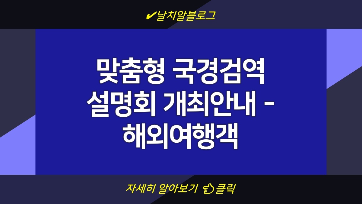 최근 국내외 여행과 축산업 활동의 증가로 인해 국경검역의 중요성이 더욱 부각되고 있습니다. 이에 따라 해외여행객, 축산관계자, 다문화가족지원센터 직원 및 유관기관 직원들을 대상으로 하는 수요자 맞춤형 국경검역 설명회가 개최됩니다. 이 설명회에서는 국경검역의 절차와 중요성, 관련 규정 및 유의사항에 대해 자세히 설명할 예정입니다. 참석자는 각자의 상황에 맞는 검역 정보를 확인하고, 궁금한 점을 해결할 수 있는 기회를 제공받게 됩니다.