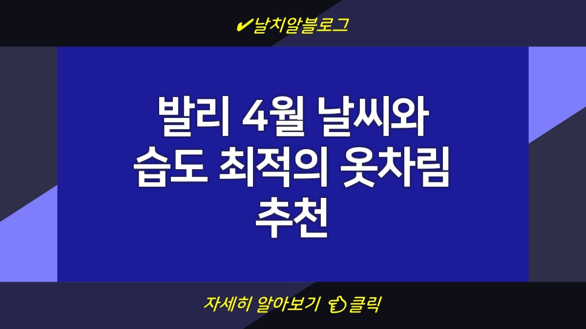 4월의 발리는 다른 계절에 비해 비교적 쾌적한 날씨를 자랑하지만, 습도가 높기에 적절한 대비가 필요합니다. 여름철의 성수기 이전에 여행하기 좋은 시점으로 알려져 있습니다. 여행 준비 시 날씨 정보를 정기적으로 체크하고, 편안하고 실용적인 옷차림을 고려하는 것이 좋습니다.