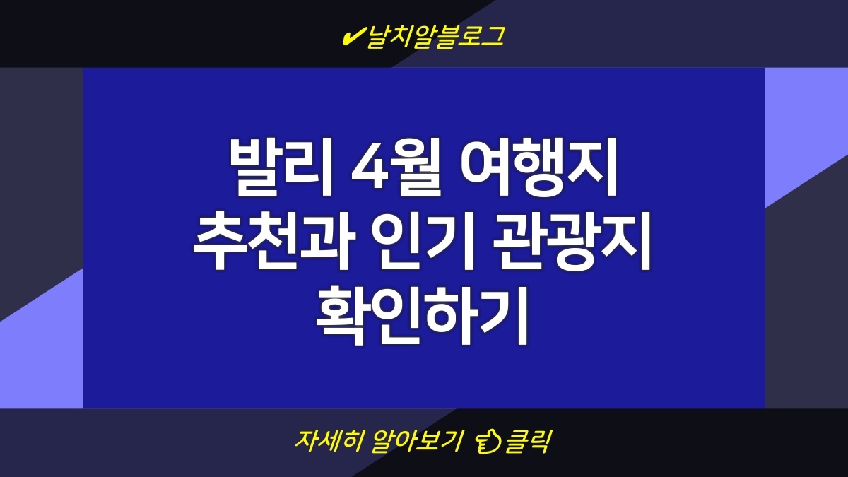 인도네시아 발리는 매혹적인 풍경과 독특한 문화로 여행객들에게 사랑받는 인기 목적지입니다. 4월에 방문하면 아름다운 날씨를 경험할 수 있으며, 다양한 관광지와 액티비티를 즐길 수 있습니다. 섬의 기후는 쾌적하여 자연을 만끽하기 좋은 시점이며, 많은 행사와 축제도 열립니다. 이 시기에 가볼 만한 명소들뿐만 아니라 여행을 위한 필수 준비물도 알아보는 것이 중요합니다.