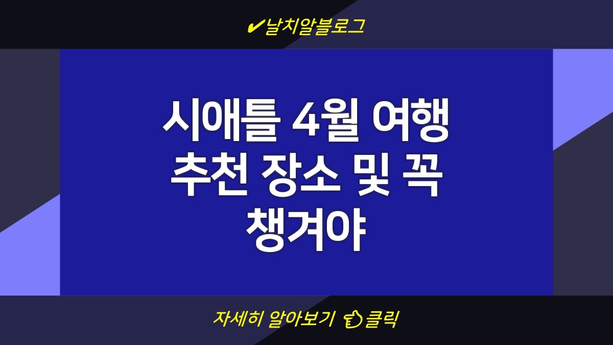 시애틀은 아름다운 자연경관과 풍부한 문화유산을 가진 도시입니다. 4월에 방문할 때는 온화한 날씨 덕분에 도시 관광과 야외 활동을 즐기기에 최적입니다. 이 시기에는 다채로운 행사와 축제가 열려 다채로운 경험을 할 수 있습니다. 그중에서도 피크닉이나 하이킹을 고려한다면, 주요 관광지와 준비물을 잘 알고 있어야 합니다. 시애틀의 매력을 최대한 즐기기 위해 목록을 작성해 보세요!