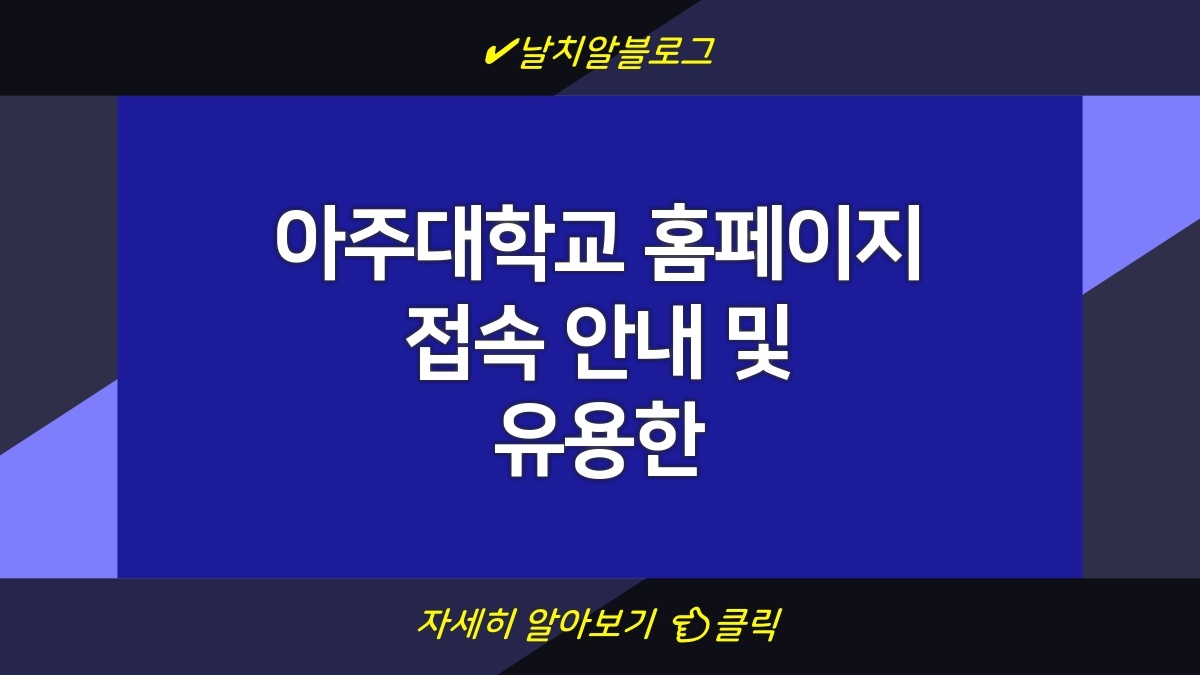 아주대학교는 우수한 교육과 연구로 잘 알려진 우리나라의 명문 대학교입니다. 이 학교의 공식 홈페이지인 [http://www.ajou.ac.kr](http://www.ajou.ac.kr)에서는 학교에 대한 다양한 정보를 제공합니다. 홈페이지에서는 특히 학교소개, 입학정보, 대학 및 대학원 과정, 교내 연구지원 안내, 산학협력 사업 소개, 창업 보육 사업, 연구기관, 학사정보, 장학정보, 복지와 편의시설에 관한 정보를 쉽게 찾아볼 수 있습니다. 이러한 정보들은 재학생은 물론, 입학을 준비하는 학생들에게도 큰 도움이 됩니다.