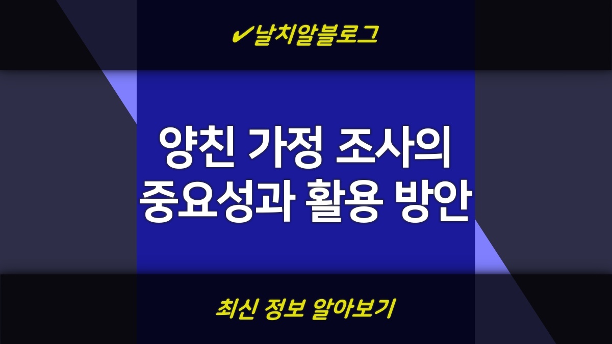 양친 가정 조사는 가족 구성원 간의 관계와 구조를 이해하는데 중요한 역할을 합니다. 이는 가족의 심리적 및 정서적 지지를 분석하고, 가정의 안정성을 평가하는 데 기여합니다. 조사는 이혼이나 사별과 같은 가정의 문제를 해결하는 데 필요한 정보 제공을 통해 관련 기관이나 전문가들이 보다 명확한 결정을 내릴 수 있도록 도와줍니다. 특히 안정된 양친 가정은 자녀의 정신적, 정서적 발달에 긍정적인 영향을 미치므로, 이를 연구하고 평가하는 것이 중요합니다.