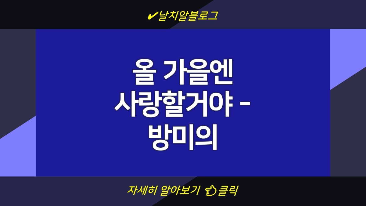 방미의 올 가을엔 사랑할거야는 감성적인 가사와 멜로디로 많은 이들의 마음을 사로잡고 있는 곡입니다. 이 노래는 사랑의 아리송한 감정을 담고 있어, 들으면 가을의 풍경과 함께 사랑을 느끼게 해줍니다. 특히 이 시점에서 사랑에 관한 심리적인 변화를 이야기하며, 올 가을 당신의 사랑 이야기와 연결될 수 있습니다. 결코 평범하지 않은 사랑의 지나온 여정이 노래 속에 잘 녹아있어, 많은 사람들에게 공감을 불러일으키고 있습니다. 따뜻한 멜로디와 함께하는 가을의 로맨스를 상상해 보세요.