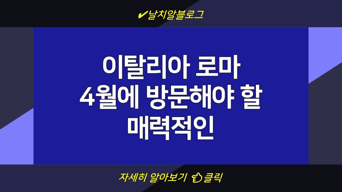 로마는 역사, 문화, 미식을 모두 갖춘 매력적인 도시로, 4월은 여행하기 매우 좋은 시기입니다. 다양한 명소와 음식, 그리고 여행 준비물까지 체크하여 알차고 즐거운 여행을 만드세요. 로마에서의 시간은 잊지 못할 기억으로 남을 것이며, 여러분의 소중한 여정을 더욱 풍부하게 만들어 줄 것입니다. 모험과 감동이 가득한 로마를 경험해보세요!