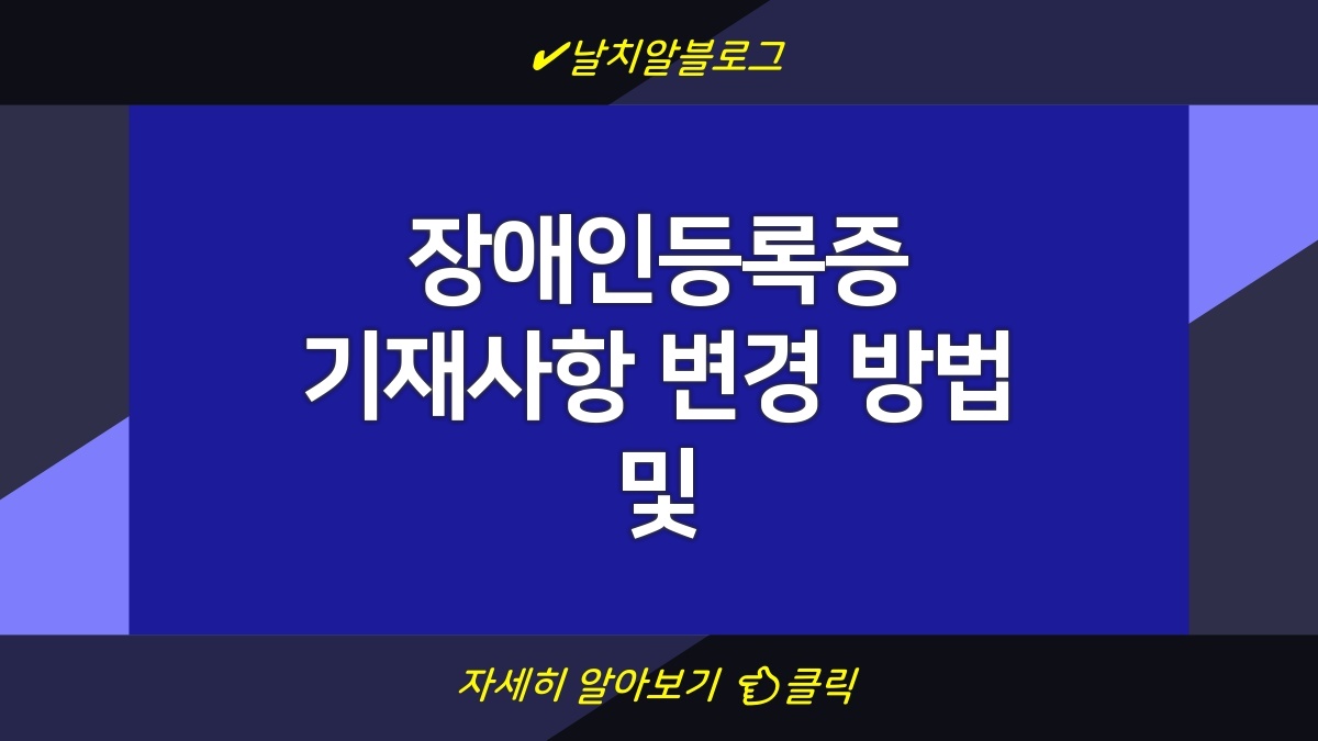 장애인등록증 기재사항을 변경하기 위해서는 몇 가지 간단한 절차를 따라야 합니다. 첫째, 변경 사유에 대한 확인이 필요하며, 관련 서류를 준비해야 합니다. 둘째, 해당 서류를 가지고 관할 읍면동사무소에 방문하여 신청서를 제출합니다. 셋째, 제출 후 변경된 내용이 반영된 새로운 등록증을 발급받기까지 일정 기간이 소요될 수 있습니다. 신청 전 필요한 서류도 미리 점검하는 것이 도움이 됩니다. 반드시 기한 내에 신청을 해야 합니다.