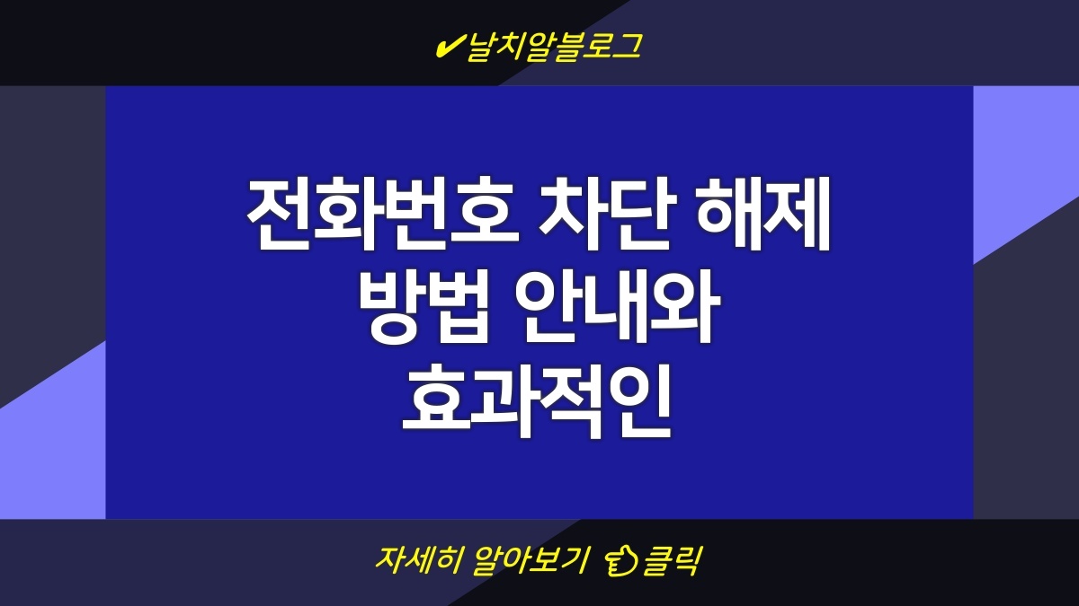 차단된 전화번호를 해제하려는 경우, 많은 사용자들이 직면하는 문제입니다. 이 글에서는 전화번호 차단 해제하는 방법에 대해 설명드릴 것입니다. 특히, 기기의 종류에 따라 차단 해제 절차가 다를 수 있으니, 각 상황에 맞는 방법을 알고 따르는 것이 중요합니다. 이러한 방법을 잘 활용하면 원치 않는 전화의 방해 없이 필요한 연락처를 다시 연결할 수 있습니다. 또한, 차단 해제를 통해 잃었던 소중한 소통의 기회를 회복할 수 있으니 이 점도 고려해 보시길 바랍니다.
