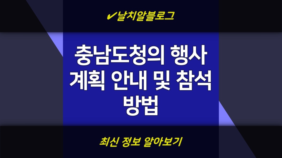 충남도청에서 계획하고 있는 다양한 행사와 관련된 정보를 체계적으로 소개합니다. 각 행사는 지역 주민과 방문객들에게 유익한 정보와 체험을 제공하기 위해 마련되었습니다. 행사에 따른 일정, 참여 방법, 주요 내용 등을 상세히 안내드리며, 이를 통해 많은 분들이 참여할 수 있도록 도와드리고자 합니다.