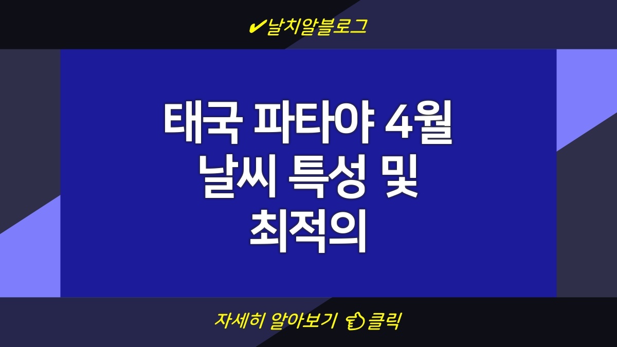 4월의 파타야는 덥고 습한 날씨가 일반적이며, 자외선 지수가 높습니다. 외출 시 적절한 옷차림과 자외선 차단제를 사용하는 것이 중요합니다.