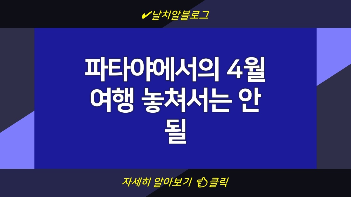 파타야는 다양한 볼거리와 즐길거리를 제공하는 매력적인 여행지입니다. 특히 4월에는 따뜻한 날씨와 함께 다양한 활동이 가능하여 많은 관광객이 찾는 시기입니다. 이번 여행을 통해 파타야의 매력을 만끽하고, 소중한 추억을 만들어보세요. 준비물을 잘 챙기고 즐거운 일정을 계획하는 것이 중요합니다.