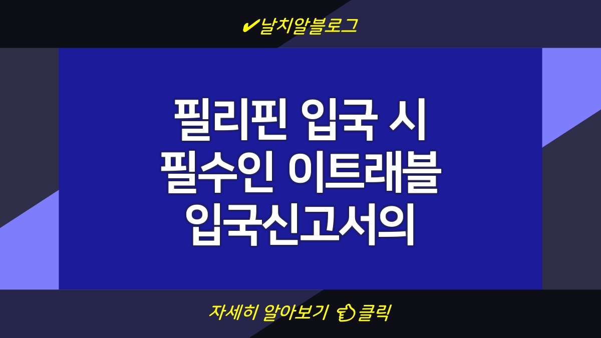 필리핀으로 여행하거나 비즈니스로 방문할 경우, 입국 시 이트래블 입국신고서를 작성해야 합니다. 이는 비행기 탑승 전 온라인으로 미리 제출할 수 있으며, 여행자의 건강과 안전을 보장하기 위해 필수적인 절차입니다. 이 신고서는 개인 정보, 출국지, 입국 일자 등의 정보를 포함하여 진행됩니다. 작성 시 필요한 기본적인 정보를 정확히 입력하는 것이 중요하며, 이를 통해 필리핀 입국 심사 과정이 보다 원활하게 이루어집니다.