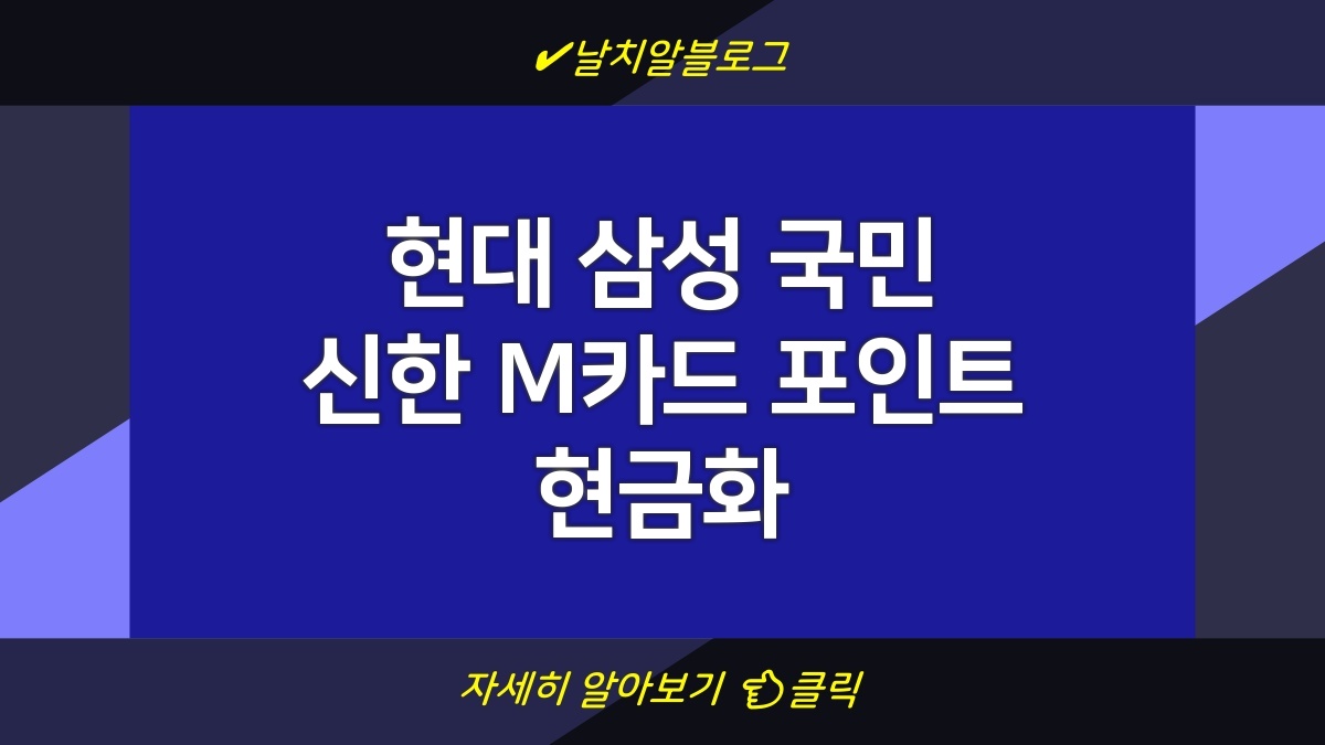현대, 삼성, 국민, 신한 M카드를 보유하고 계신 분들은 카드 포인트를 현금으로 변환할 수 있는 방법을 알아두는 것이 중요합니다. 이 글에서는 각 카드사별 포인트 현금화 방법과 포인트 통합 조회를 통해 적립된 포인트를 효율적으로 활용할 수 있는 방법을 안내합니다. 카드 포인트는 상품 구매에만 사용될 수 있는 것이 아니라, 적절한 절차를 통해 현금으로 환전할 수 있기 때문에 경제적 이점을 누릴 수 있는 기회로 활용하시기 바랍니다.