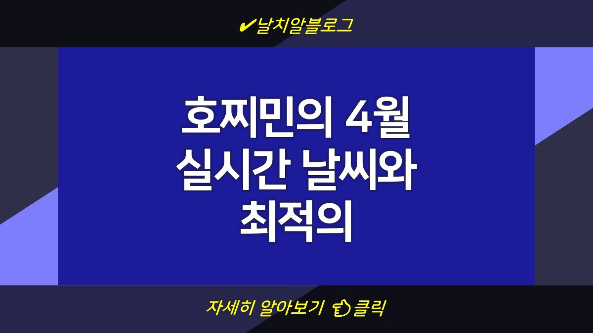 호찌민의 4월은 따뜻한 날씨와 높은 습도로 특징 지워집니다. 이 시기에는 평균 기온이 상승하며, 습도 또한 높아져 불쾌지수가 증가할 수 있습니다. 현재 호찌민의 날씨를 확인하려면 실시간 날씨 정보를 제공하는 웹사이트를 방문해보세요. 예를 들어, 여기에서 확인할 수 있습니다. 옷차림은 이와 같은 날씨 특징에 따라 가벼운 여름 옷차림을 추천합니다.
