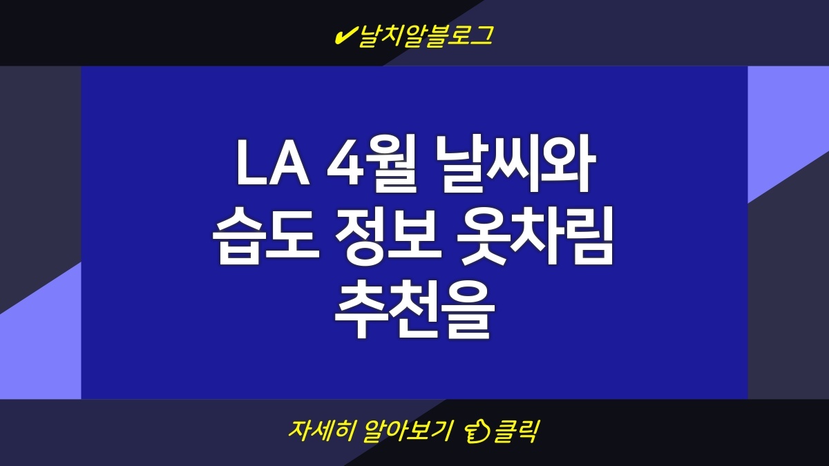 LA의 4월 날씨는 보통 온화하며 일교차가 큽니다. 낮에는 따뜻하지만 저녁에는 선선해질 수 있으니 반드시 옷차림에 유의해야 합니다.